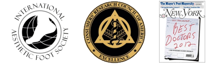 Named “Cosmetic Authority” on feet among the top podiatrists in the U.S. by “The Consumers’ Research Council of America.” 2007, 2008, 2009